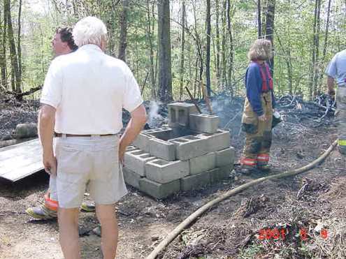 Prior to the call, the home owner was burning in the concrete block fireplace in the center of the picture. The fire danger was listed as